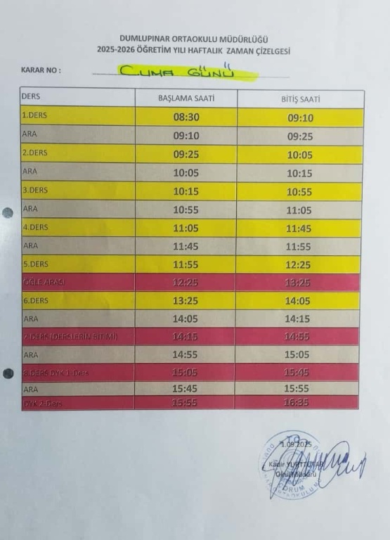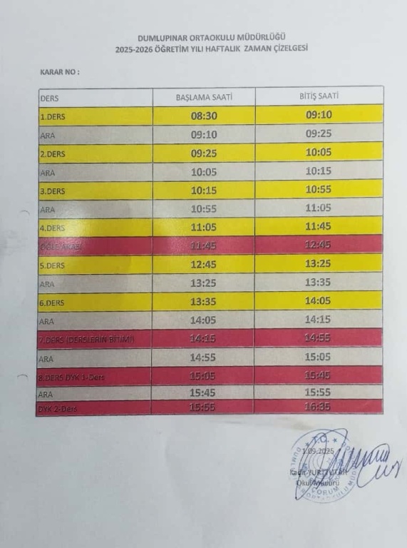 2025-2026 Eğitim-Öğretim Yılı Zaman Çizelgemiz