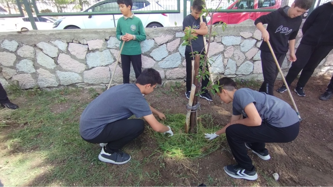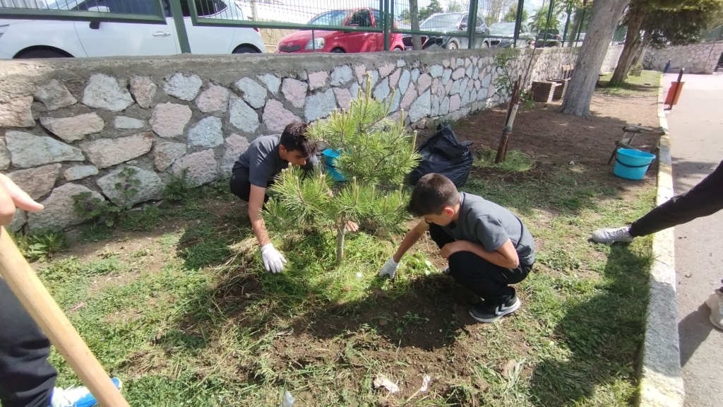 Enerji Dostu Mavi Yeşil Okul Projesi kapsamında okulumuz bahçesinde Ağaç Dikimi ve Malçlama yapılmıştır.