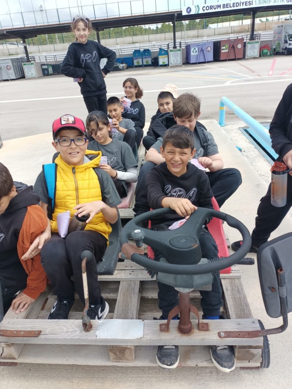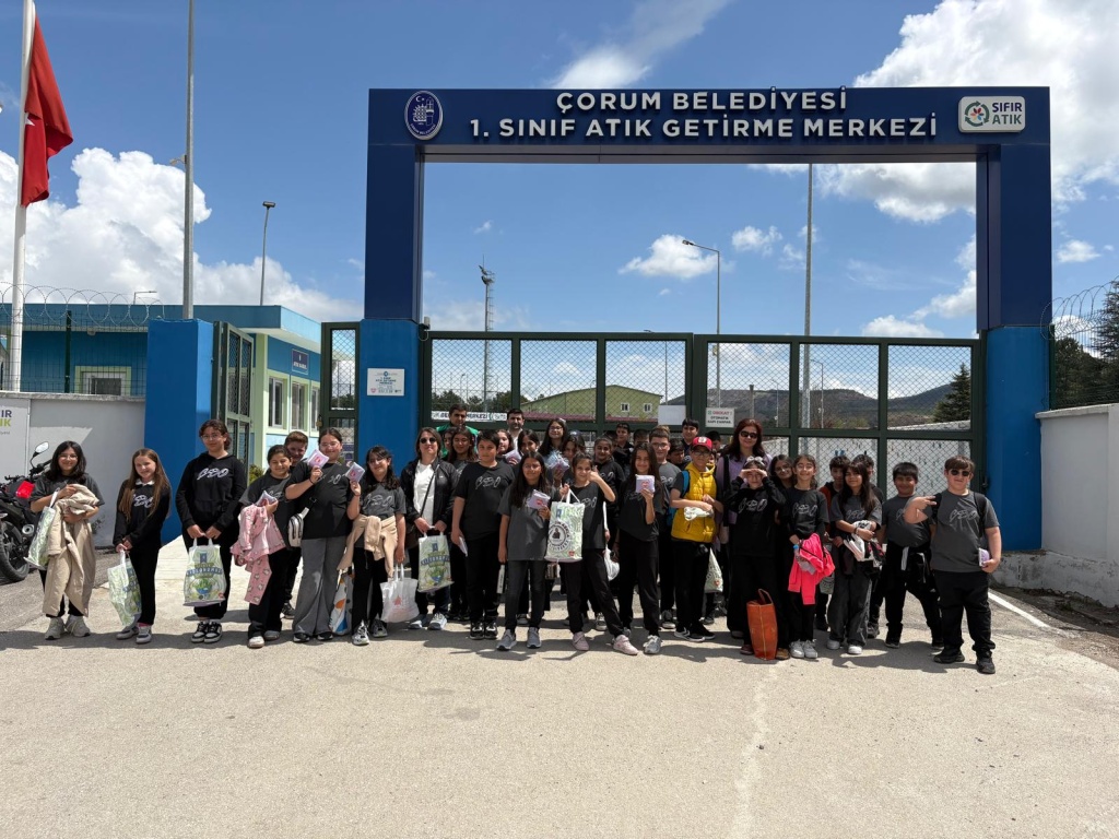 "Enerji Dostu Mavi Yeşil Okul Projesi" kapsamında öğrencilerimizin çevre konusundaki duyarlılığını artırmak, yerinde gözlem yapmak ve incelemelerde bulunmak üzere 5. Sınıf öğrencilerimiz ile Çorum Belediyesi 1. Sınıf Atık Getirme Merkezine gezi düzenlendi.